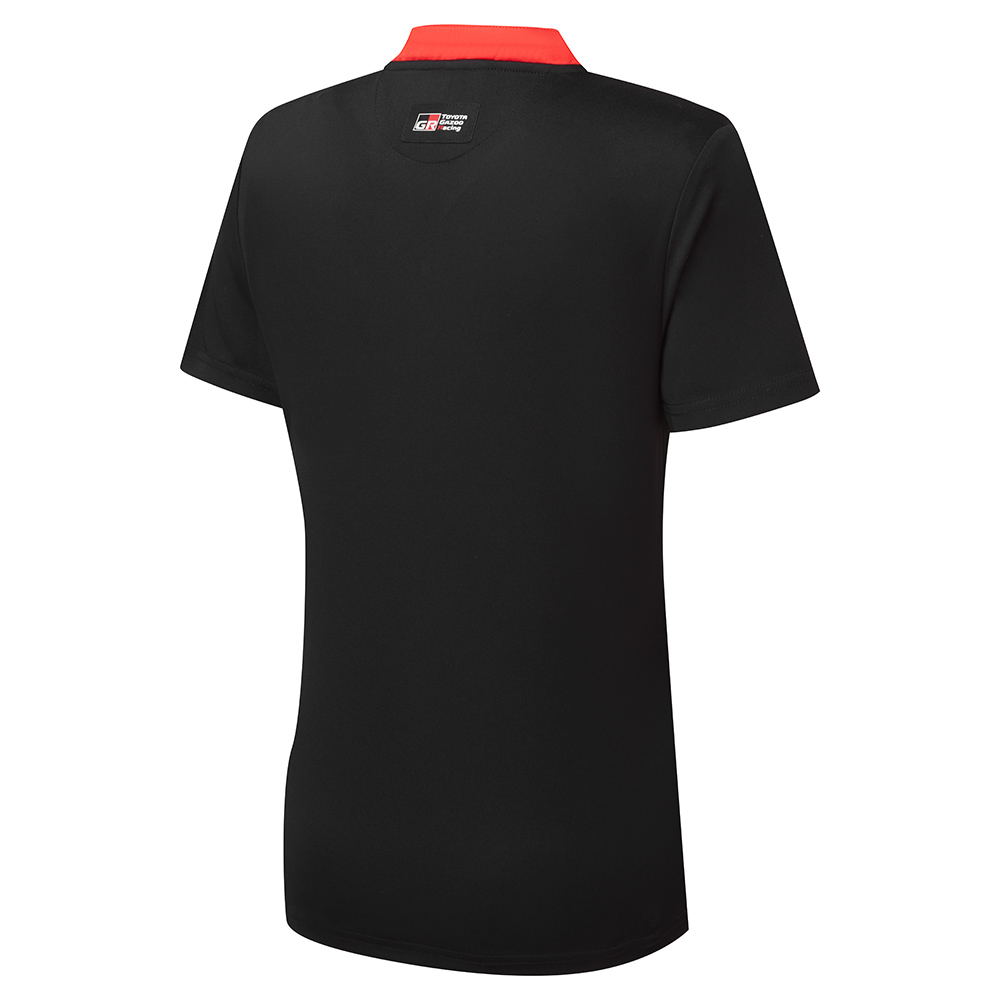 The TOYOTA GR women's technical polo is constructed from breathable, quick-drying polyester for athletic comfort and features a contrasting V-neck collar. The GR logo and TGR emblem subtly decorate the front and back, with a GR neck label and TGR shoulder tape emphasising its sporty aesthetics. This polo encapsulates the essence of TOYOTA GAZOO Racing in a refined, subtle manner.
