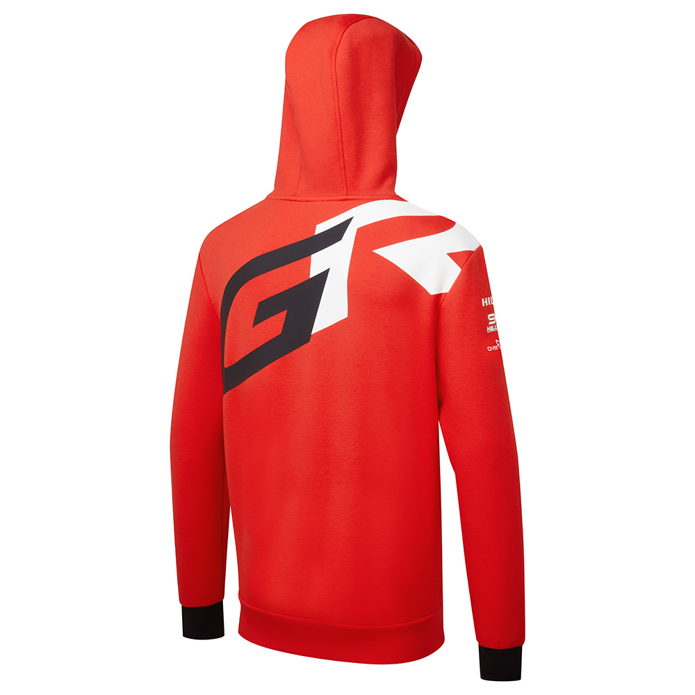 The TOYOTA GAZOO Racing Rally-Raid Team Hoodie is designed to provide comfort and style. Made from a super soft fabric for added comfort and features the striking GR logo to the back. The hoodie is enriched with two zipped hand pockets, with bespoke zip pulls. Further adding to its design is the TGR inspired hood lining, drawcords, bespoke back neck tape and contrast cuffs. It also showcases team and sponsor logos, along with white panel detailing for a distinctive look.