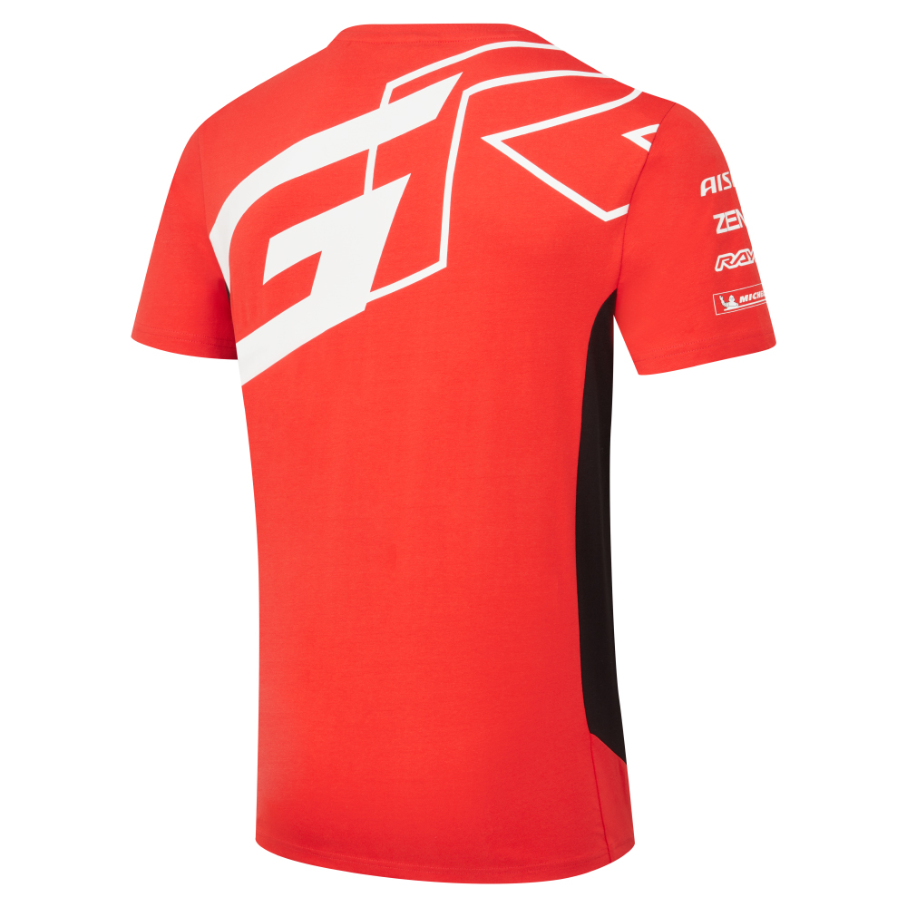 Stand out from the crowd with the TOYOTA GAZOO Racing Team Classic T-shirt. This unique piece in the collection boasts a bold, full red colourway, a departure from the rest, making it a true statement piece. The striking monochrome GR print on both sides, along with the 2025 team and sponsor logos, ensures your team spirit is always visible. The sleek black panelling and ribbed collar add a touch of sophisticated contrast, while the 100% cotton construction guarantees exceptional comfort. This is the classic T-shirt, redefined.