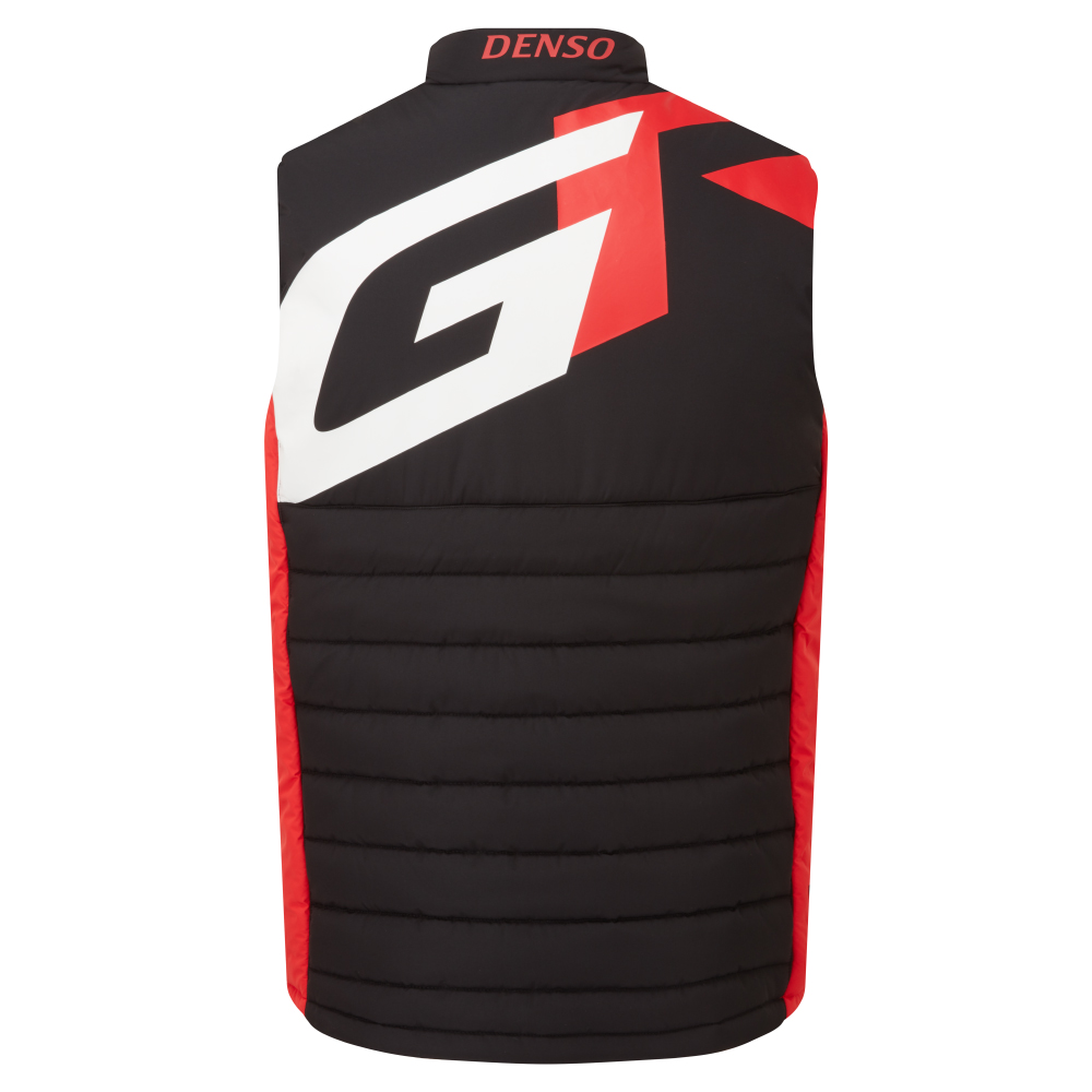 A lightweight padded black team gilet features the new GR design printed to the front and back. Finished with GR and sponsor logos, branded zip pulls and contrasting zipped hand pockets. Perfect to wear under the Team Jacket as an extra layer.