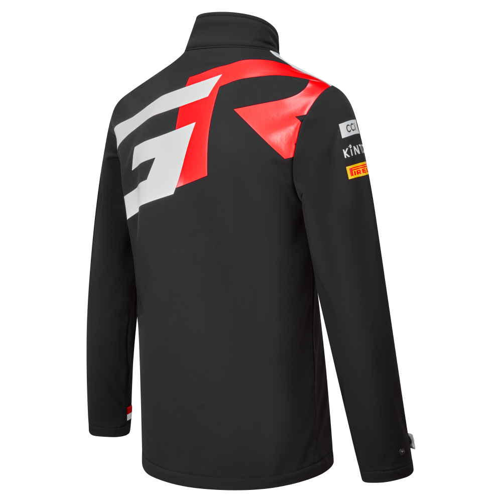 The smooth TOYOTA GAZOO Racing's softshell jacket is the ideal outdoor wear for cooler days thanks to its warm interior whilst offering maximum breathability. Features waterproof branded red zips throughout, contrast detailing to the cuffs and two front zipped hand pockets. Finished with white shoulder panels, the GR logo on reverse and the 2023 team logos to the front, back and sleeves.